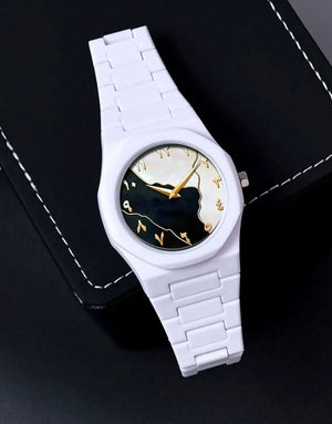 The Aura Watch is crafted for those who value elegance, meaning, and modern design. Its eye-catching black and white abstract dial represents balance, contrast, and inner strength, making every glance at your wrist a statement of individuality.